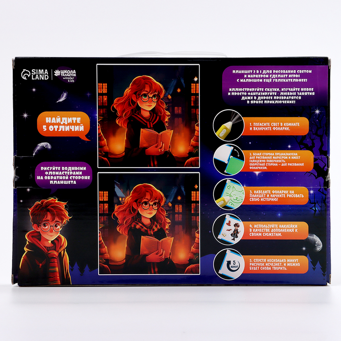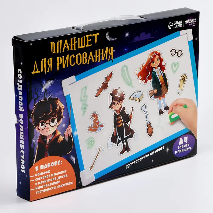Рисуем светом. Набор для рисования в темноте «Волшебство», голубой, А4 — Характеристики
