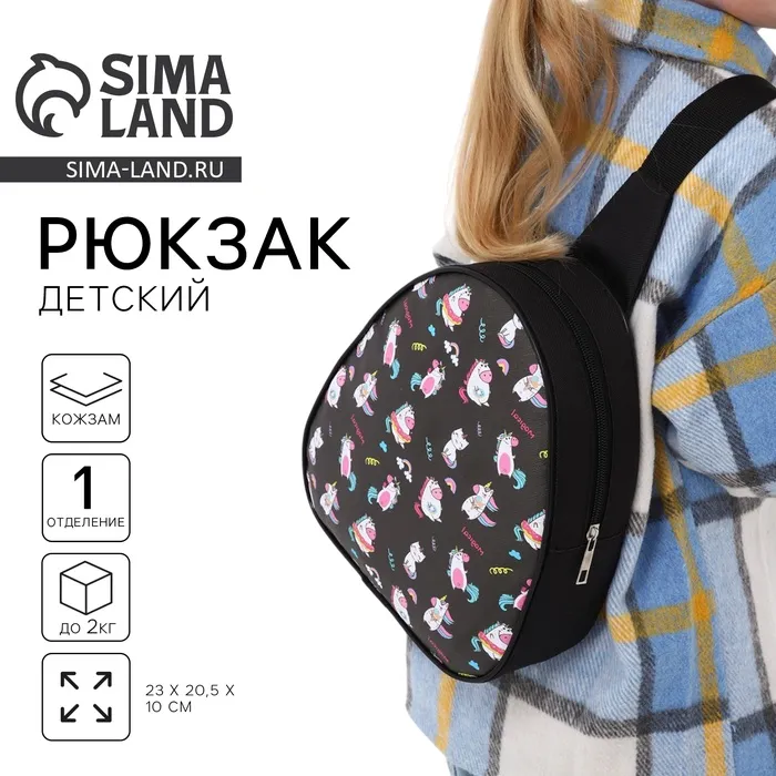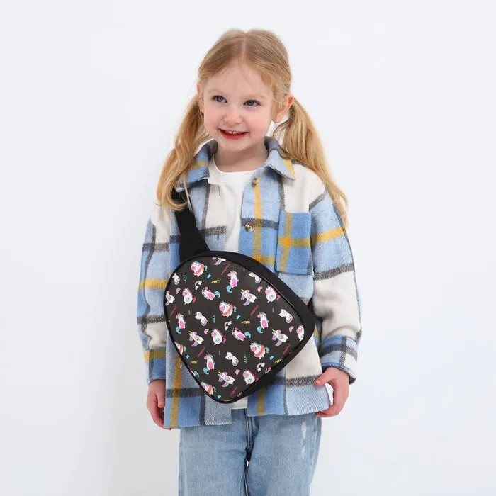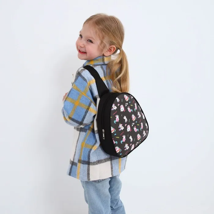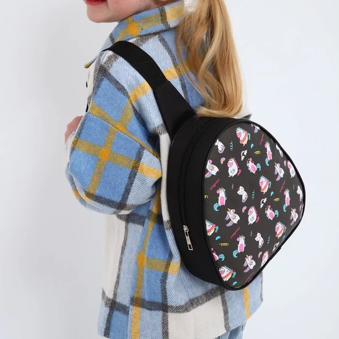 Рюкзак детский для девочки через плечо «Единорог», отдел на молнии, чёрный — Характеристики