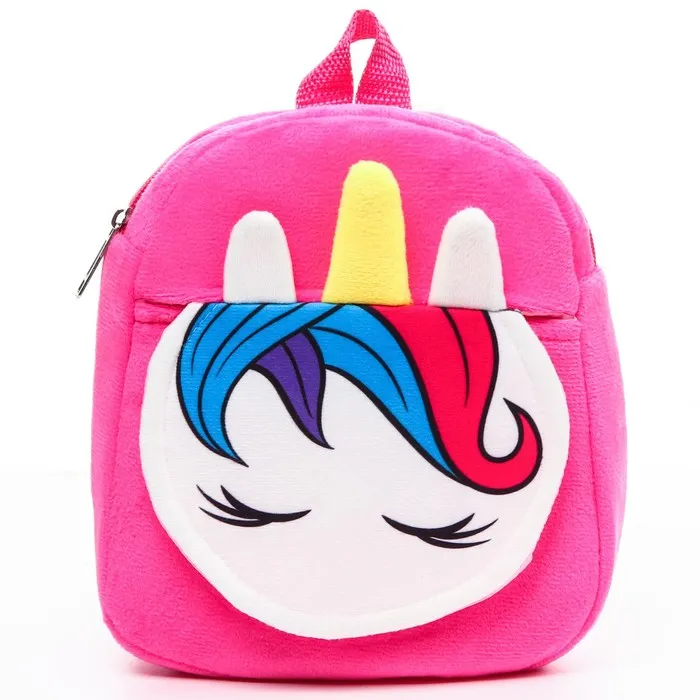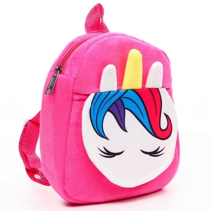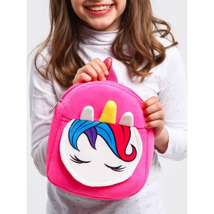 Рюкзак детский для девочки «Единорог», плюшевый на молнии, с карманом, розовый, 19×22 см, Минни Маус — Характеристики