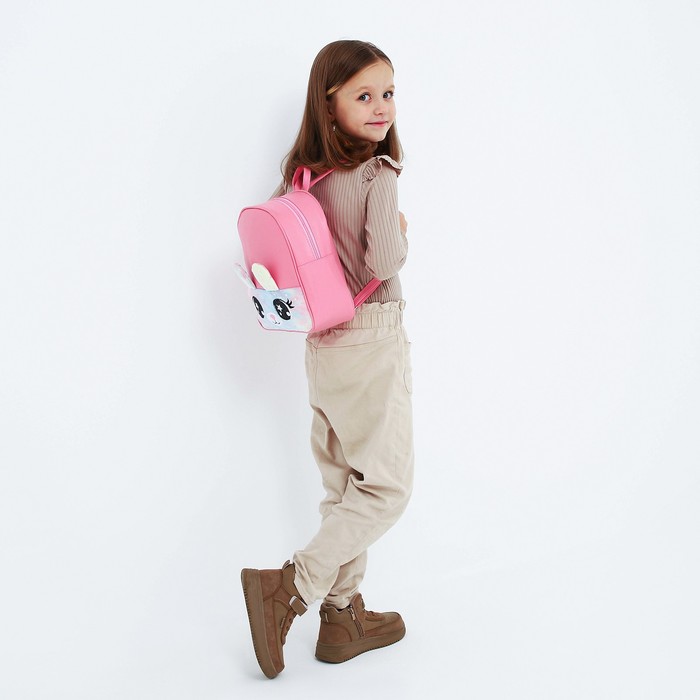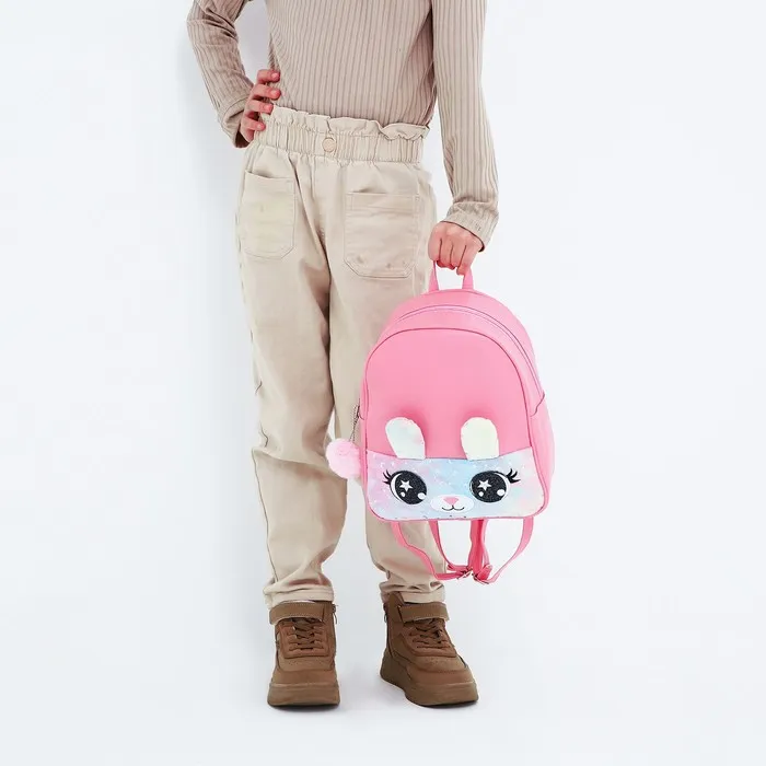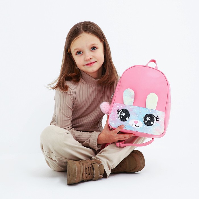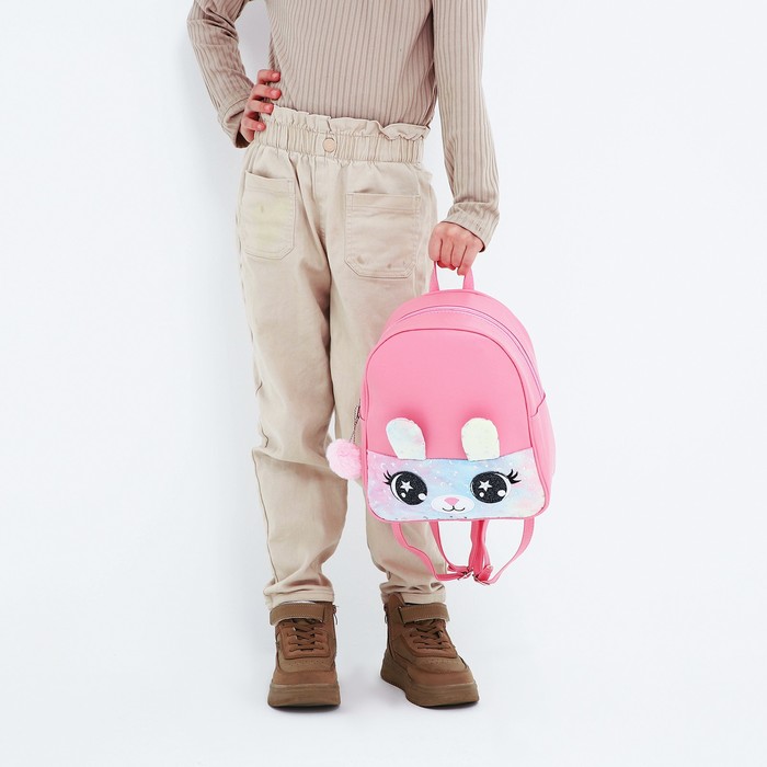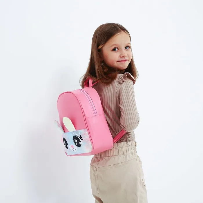 Рюкзак детский для девочки из искусственной кожи «Зайка», с карманом из плюша, 27×23×10 см — Характеристики