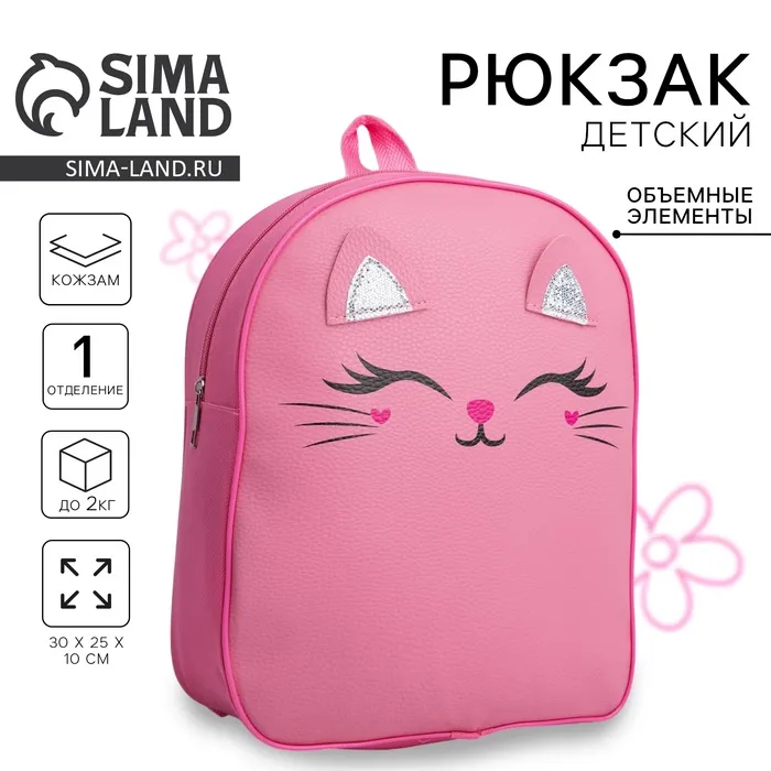 Рюкзак детский для девочки «Котейка», 30 х см, отдел на молнии, розовый — Характеристики