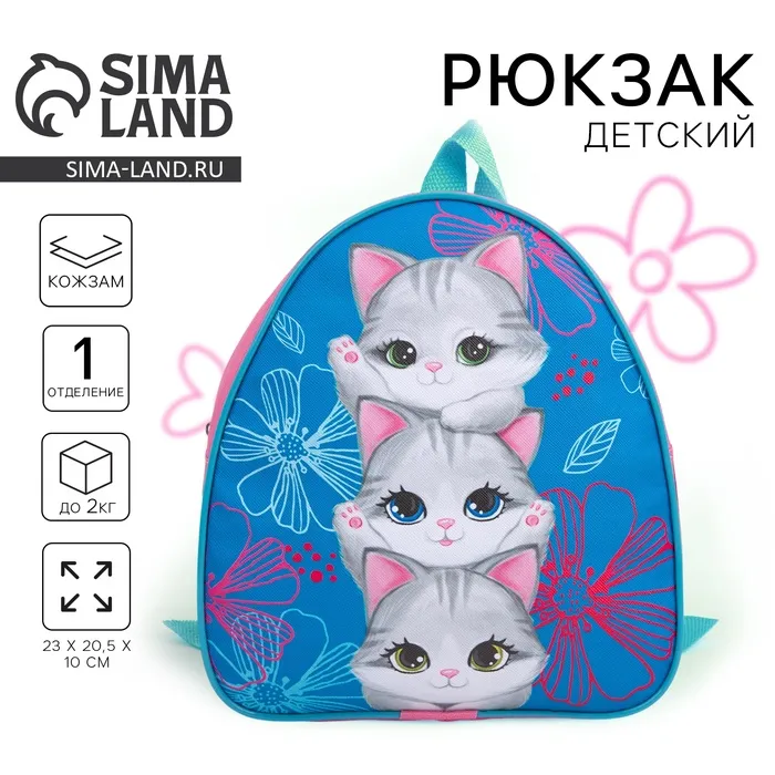 Рюкзак детский для девочки «Котята», 23х20,5 см, отдел на молнии — Характеристики