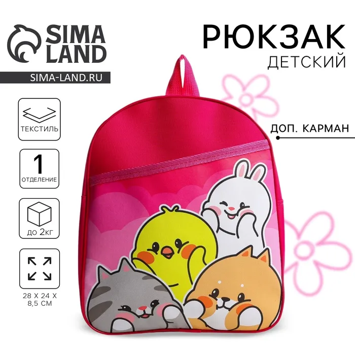 Рюкзак детский для девочки «Милые зверята», 24х28х8,5 см — Характеристики