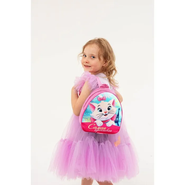 Рюкзак детский для девочки, на молнии, розовый, 23×21×10 см, Коты аристократы — Характеристики