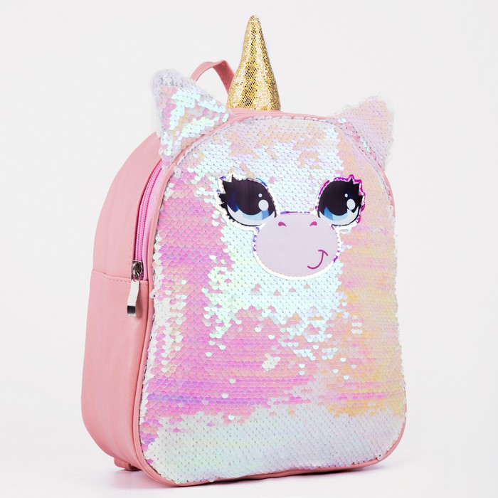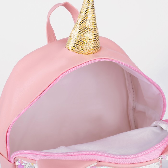 Рюкзак детский для девочки с пайетками «Единорог», отдел на молнии, розовый — Характеристики