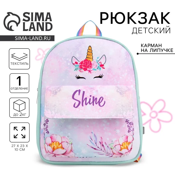 Рюкзак детский для девочки текстильный «Единорог и цветы», 27х23х10 см — Характеристики