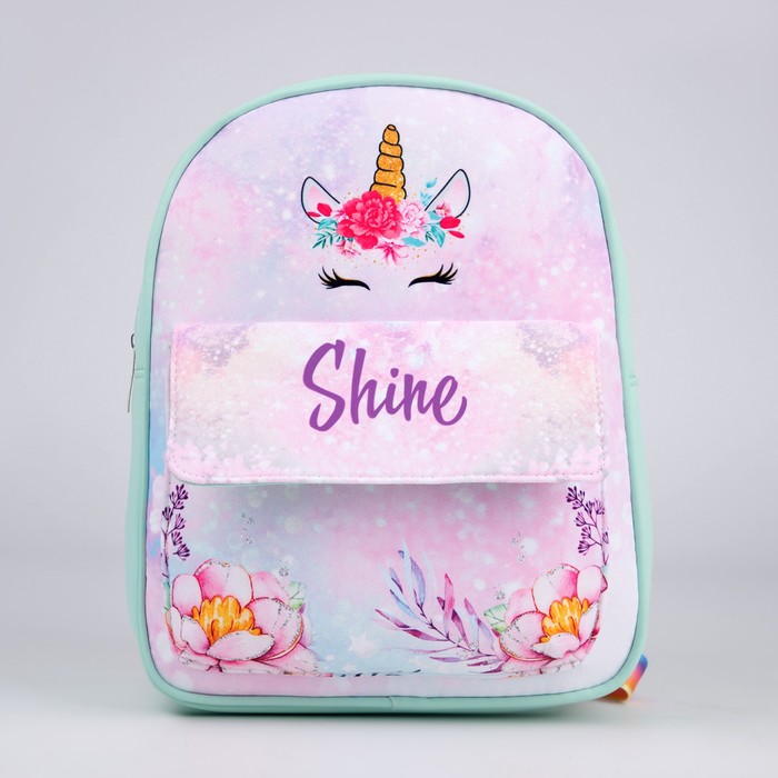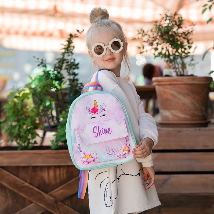 Рюкзак детский для девочки текстильный «Единорог и цветы», 27х23х10 см