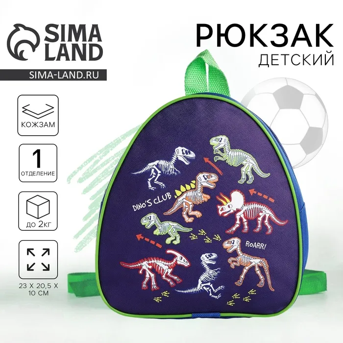 Рюкзак детский для мальчика «Динозаврики», 23×5 см см, отдел на молнии, синий — Характеристики