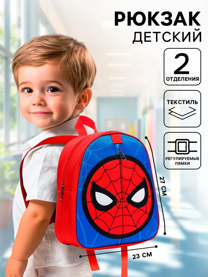 Рюкзак детский для мальчика на молнии, с карманом, 23х27х10 см, Человек-паук — Характеристики