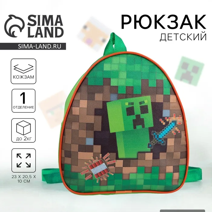 Рюкзак детский для мальчика «Пиксели», 23х20,5 см, отдел на молнии — Характеристики