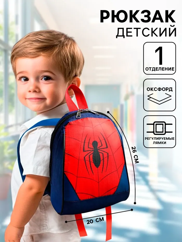 Рюкзак детский для мальчика «Спайдер-мен», отдел на молнии, 20×13×26 см, Человек Паук — Характеристики