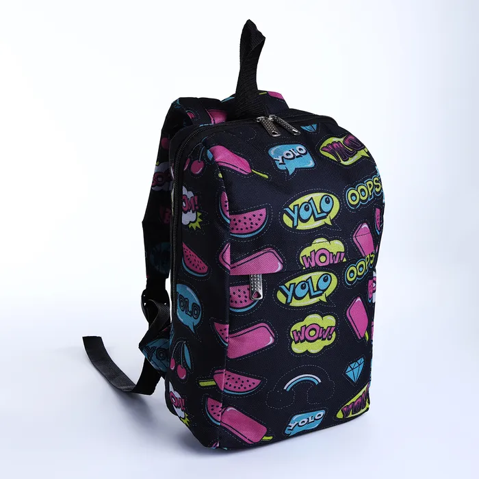 Рюкзак детский на молнии, 2 наружных кармана, цвет чёрный — Характеристики