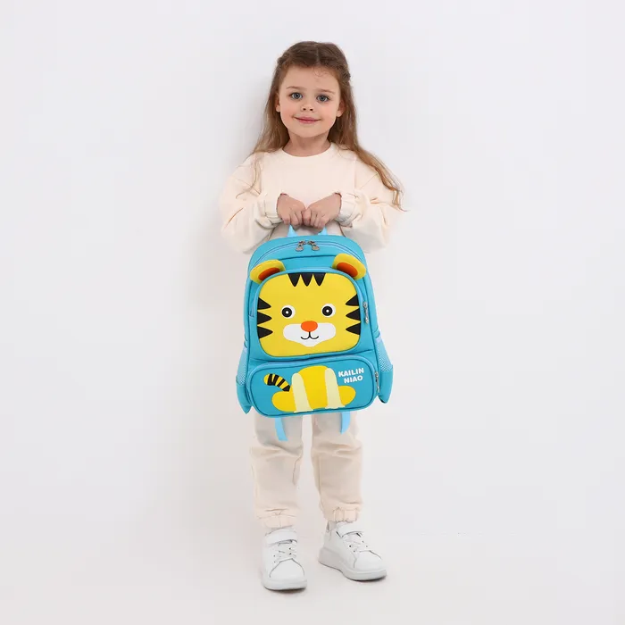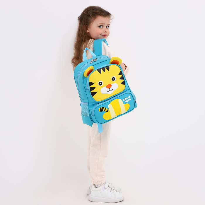 Голубой детский рюкзак с изображением тигра — универсальный аксессуар для дошкольников и младших школьников. Яркий дизайн в голубых и жёлтых тонах понравится как мальчикам, так и девочкам.