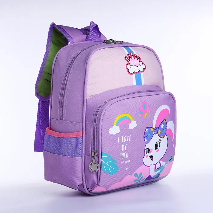 Рюкзак детский на молнии, 3 наружных кармана, цвет фиолетовый — Характеристики