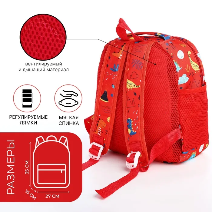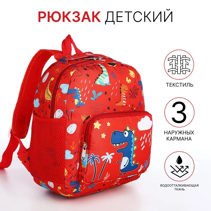 Рюкзак детский на молнии, 3 наружных кармана, цвет красный — Характеристики