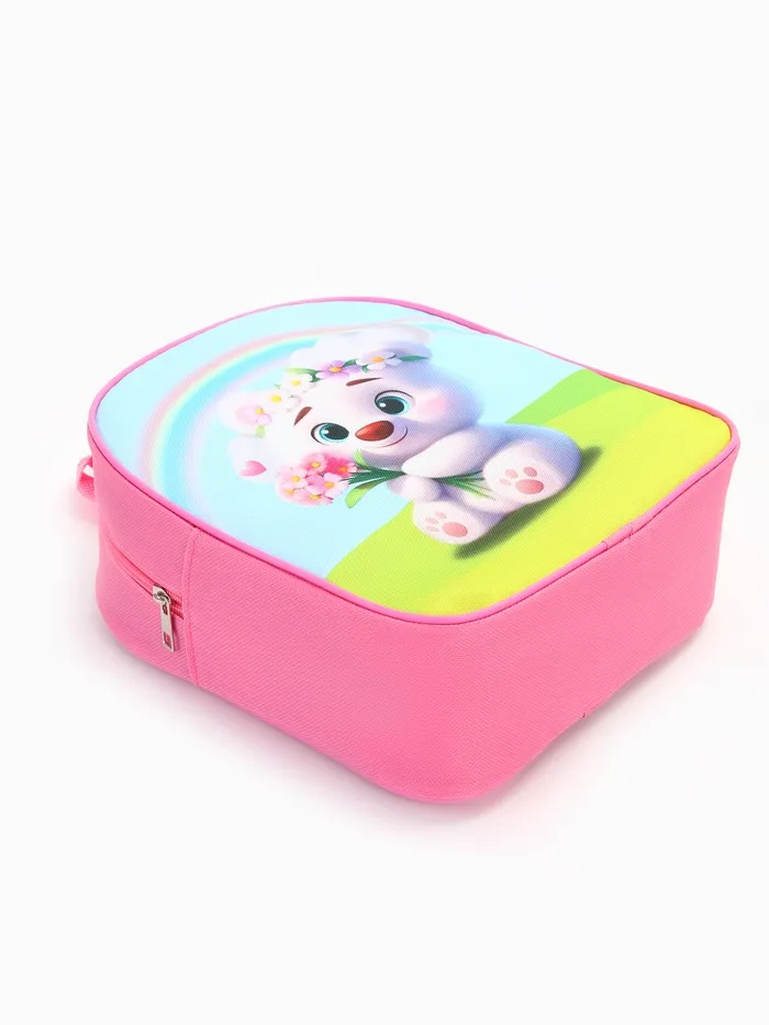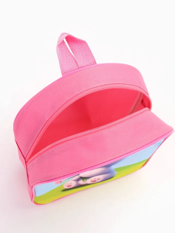 Гламурный розовый рюкзачок создаёт стильный акцент в гардеробе юных модниц. Несмотря на компактные размеры, этот аксессуар прекрасно справляется с транспортировкой всех необходимых школьных вещей и любимых игрушек, благодаря прочному водоотталкивающему текстильному материалу. Обаятельный кролик на передней части рюкзака привносит немного сказки, вызывая улыбку и радость при каждом взгляде.