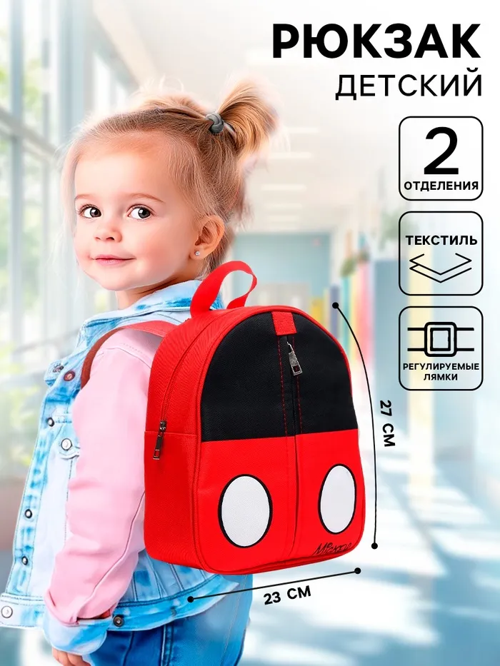 Рюкзак детский на молнии с карманом, 23 см × 10 см × 27 см, Микки Маус — Характеристики