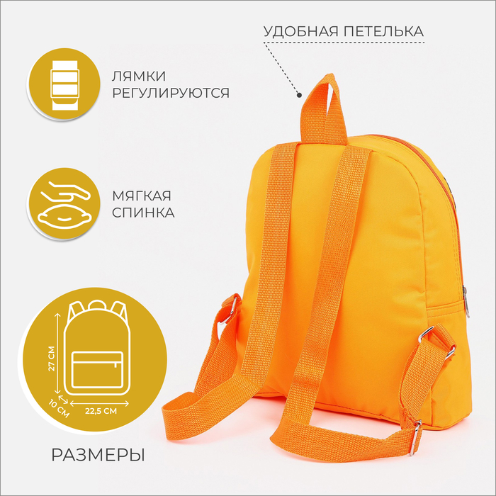 Рюкзак детский на молнии, цвет оранжевый — Характеристики