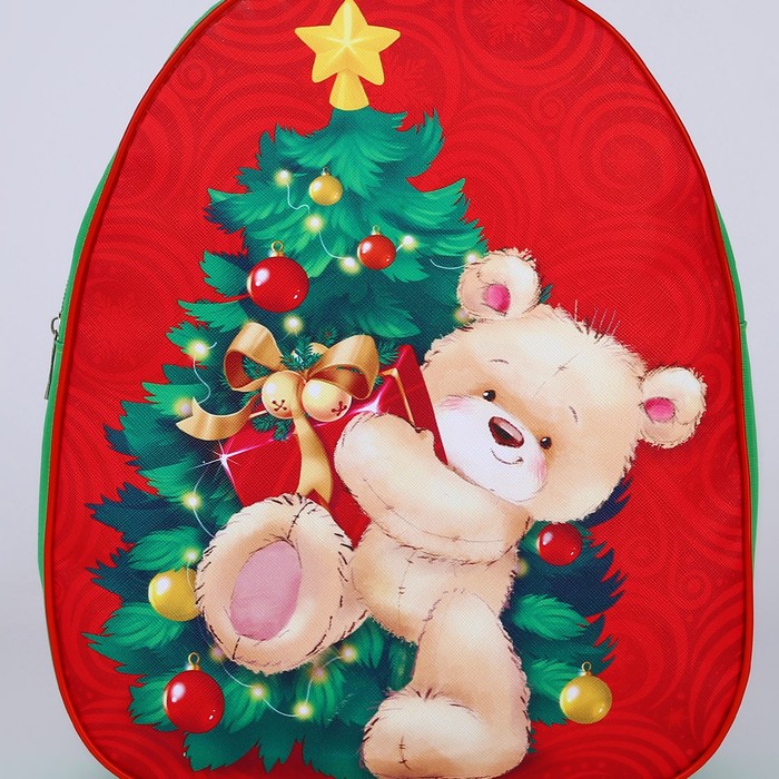 Рюкзак детский новогодний «Медвежонок с ёлкой», 30 х 25 см — Характеристики