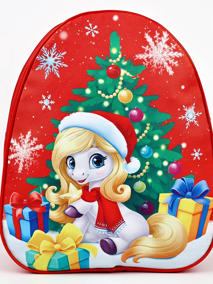 Рюкзак детский новогодний «Подарки под ёлкой» лошадь, 33×25 см — Характеристики