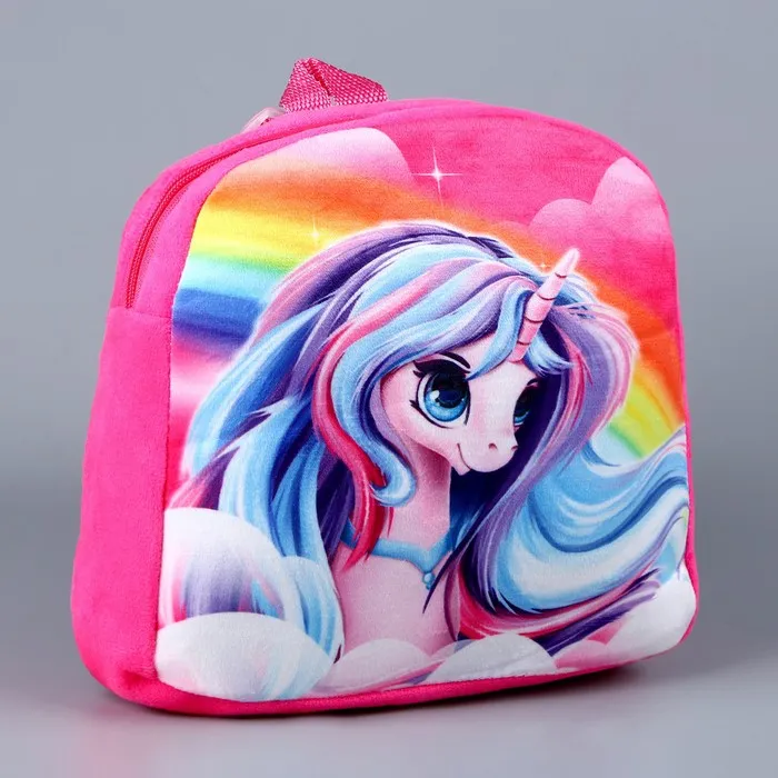 Рюкзак детский плюшевый для девочки «Радужный единорожик», 23×23×7 см — Характеристики