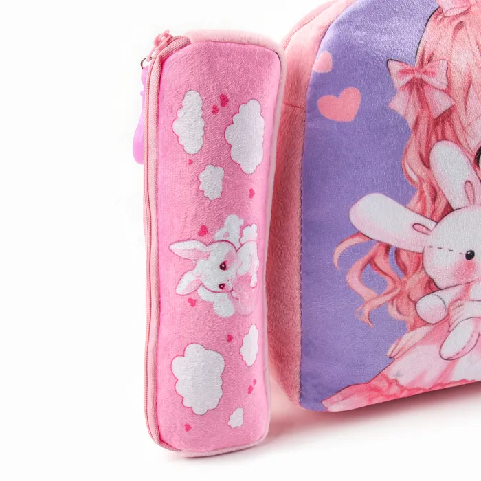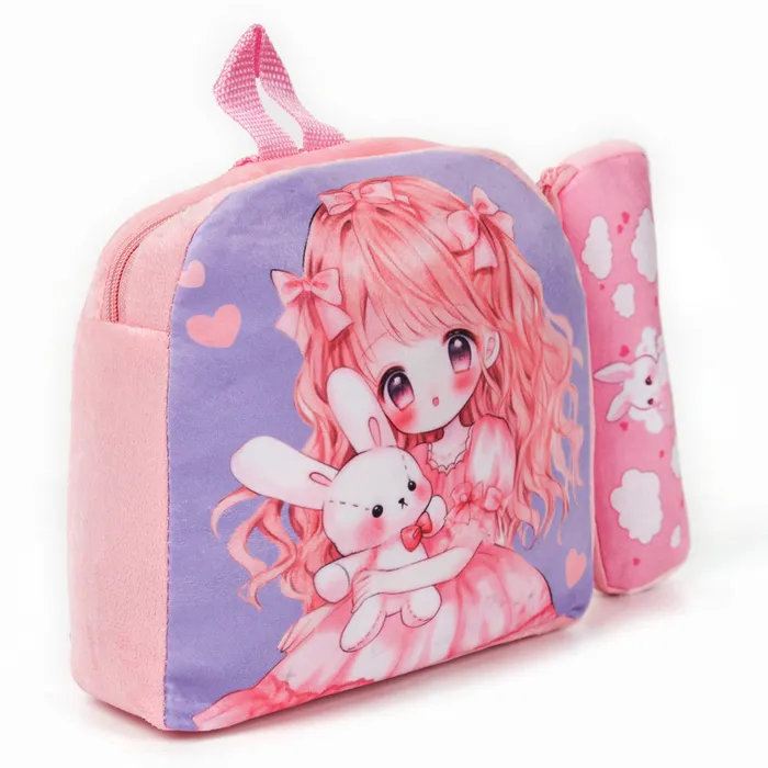 Рюкзак детский плюшевый с пеналом «Аниме девочка», 24×24 см, розовый — Характеристики