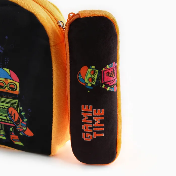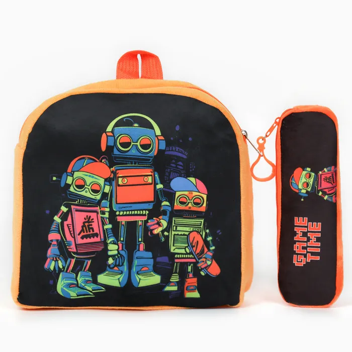 Рюкзак детский плюшевый с пеналом «Роботы», 24×24 см — Характеристики