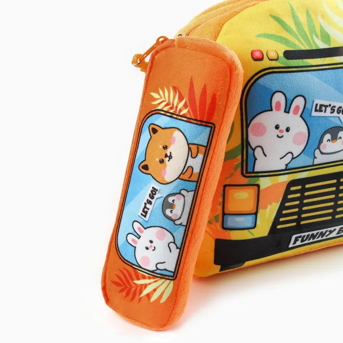 Рюкзак детский плюшевый с пеналом «Зверята в автобусе», 24×24 см — Характеристики