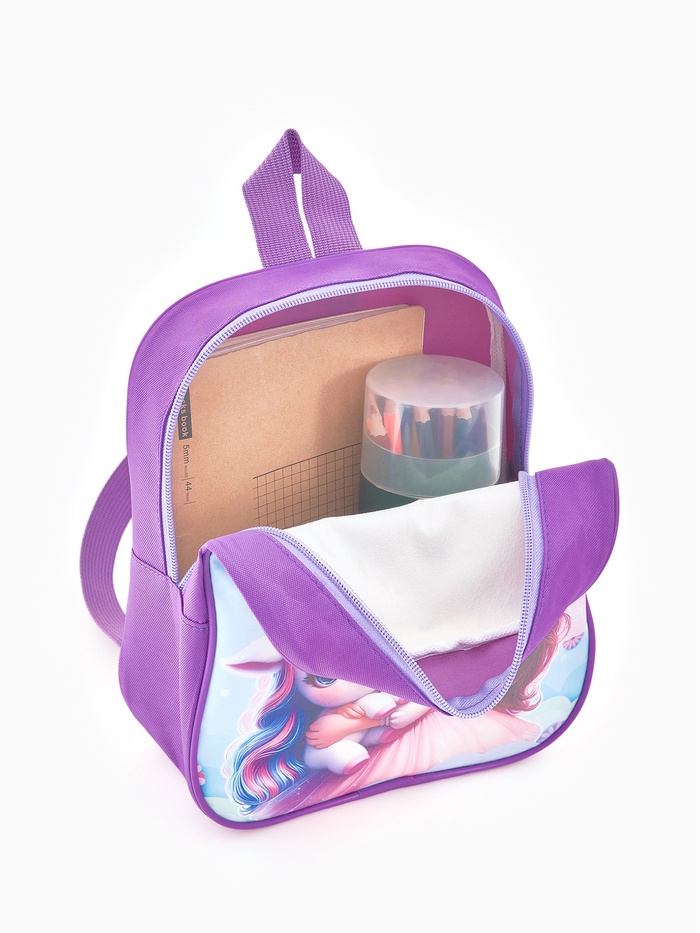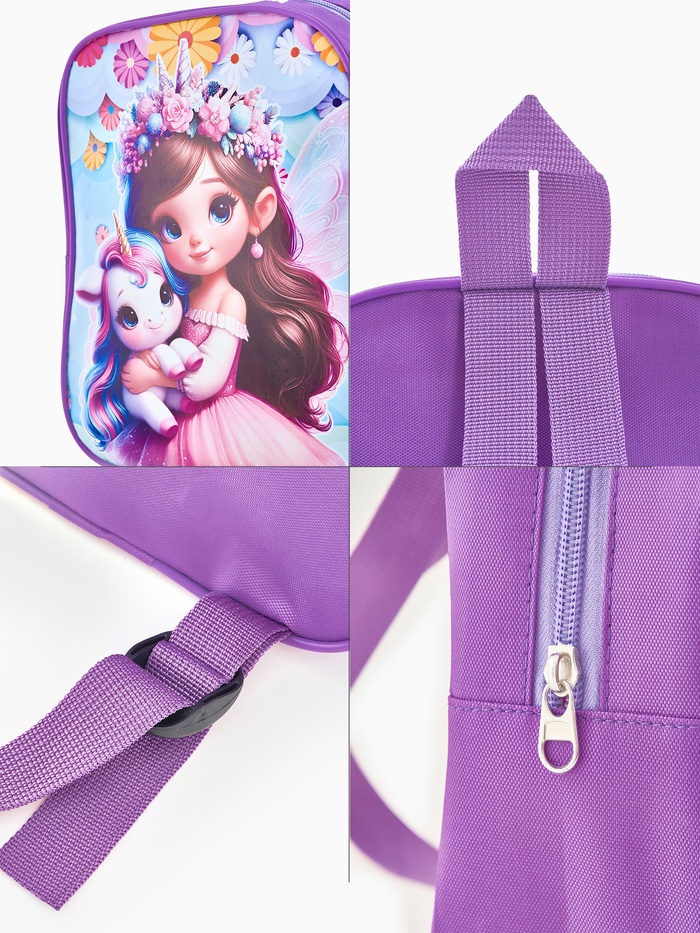 Рюкзак детский «Принцесса и единорог» Выбражулька, для девочки, 20.5×9×24 см, сиреневый — Характеристики
