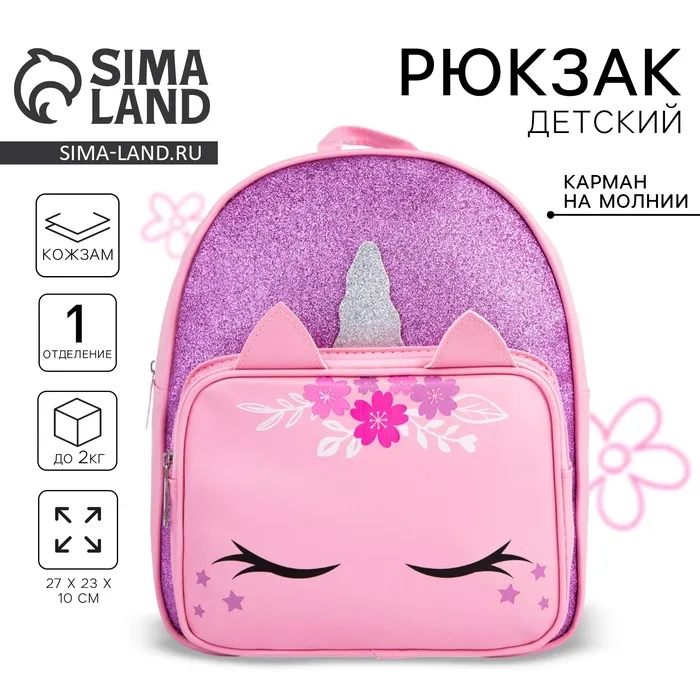 Рюкзак детский с карманом для девочки «Единорог», искусственная кожа, 27х23 х 10 см — Характеристики