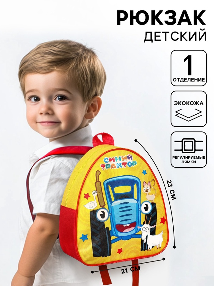 Рюкзак детский «Синий трактор», красно-желтый, 23×21×10 см — Характеристики