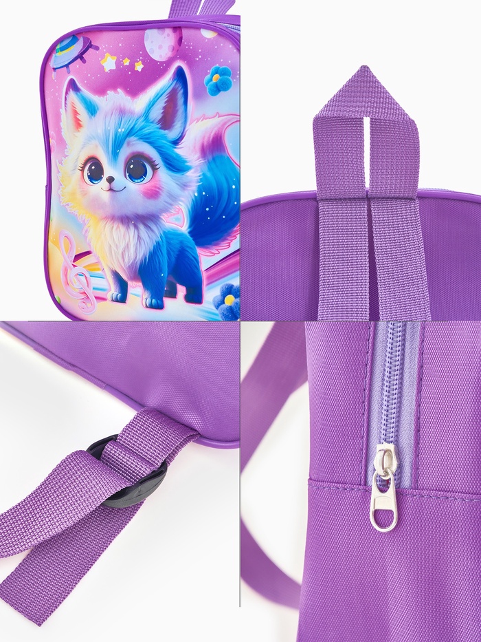 Рюкзак детский «Волшебная собачка» Выбражулька, для девочки, на молнии, 20.5×9×24 см, сиреневый — Характеристики