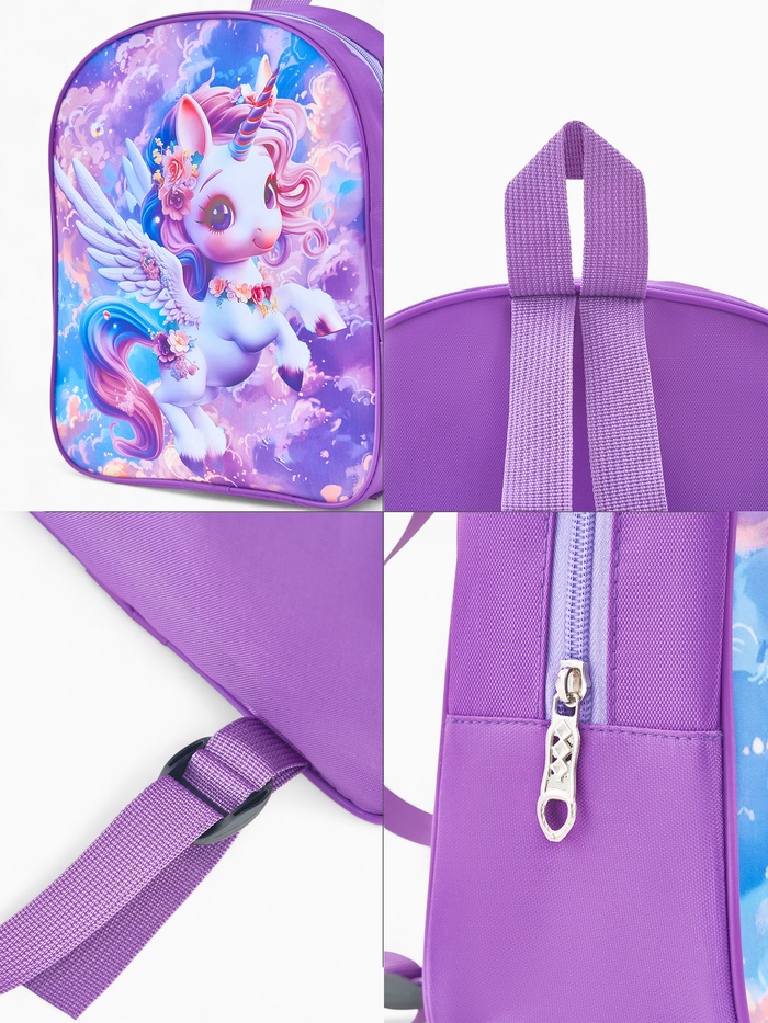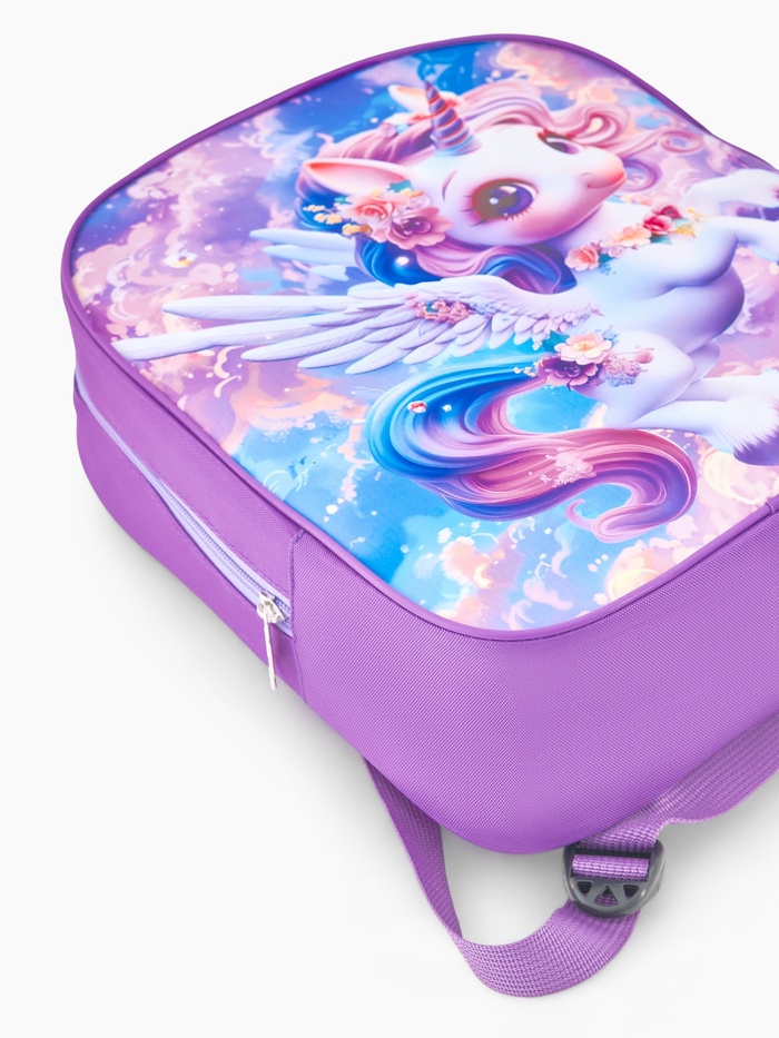 Рюкзак помогает девочке учиться организовывать свое пространство — складывать и находить нужные предметы. Укороченная спинка соответствует росту дошкольника, а прочные материалы сохраняют форму после активных игр. Изображение единорога inspires воображение, делая этот рюкзак особенным спутником в детский сад и на прогулки.