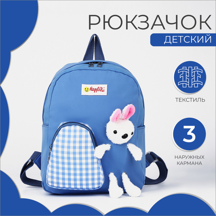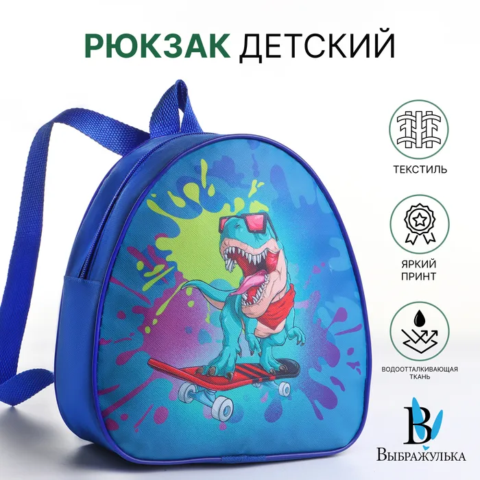 Рюкзак детский «Выбражулька» на молнии, размер 20.5×9×23 см, синий/зелёный/разноцветный — Характеристики