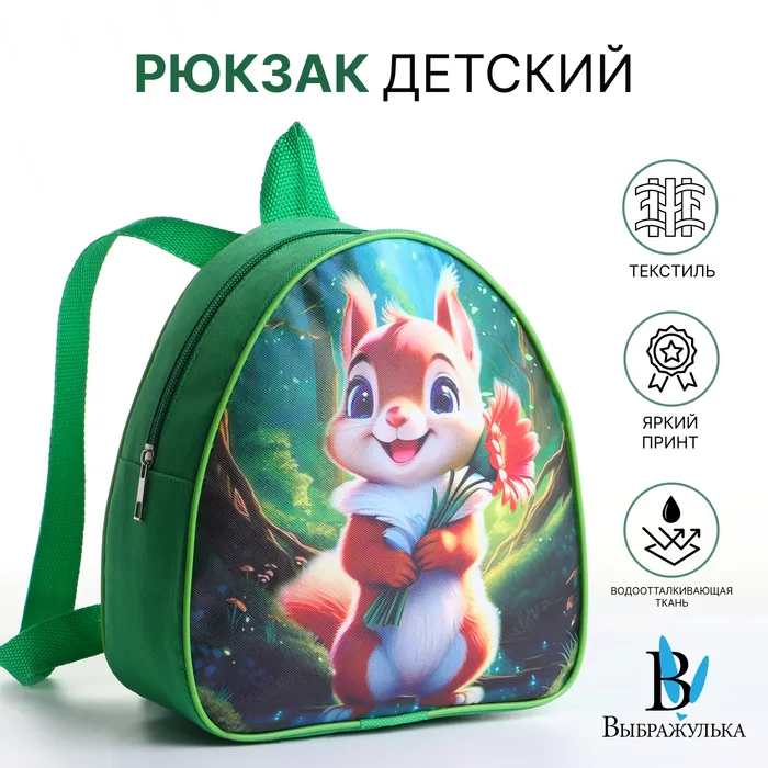 Рюкзак детский «Выбражулька» на молнии, размер 20.5×9×23 см, зелёный/разноцветный — Характеристики