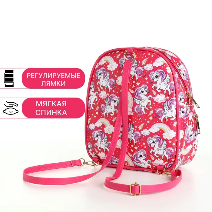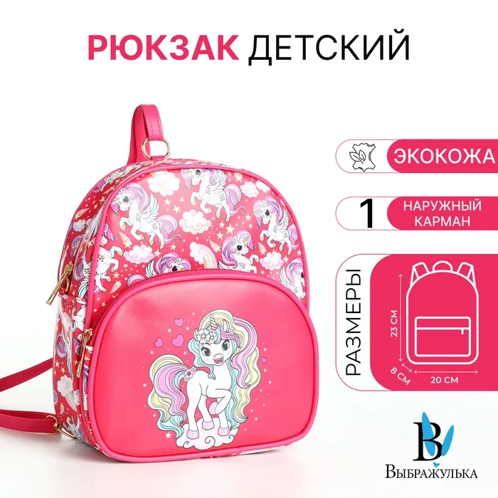 Рюкзак детский «Выбражулька», на молнии, размер 20×8×23 см, ярко-розовый — Характеристики
