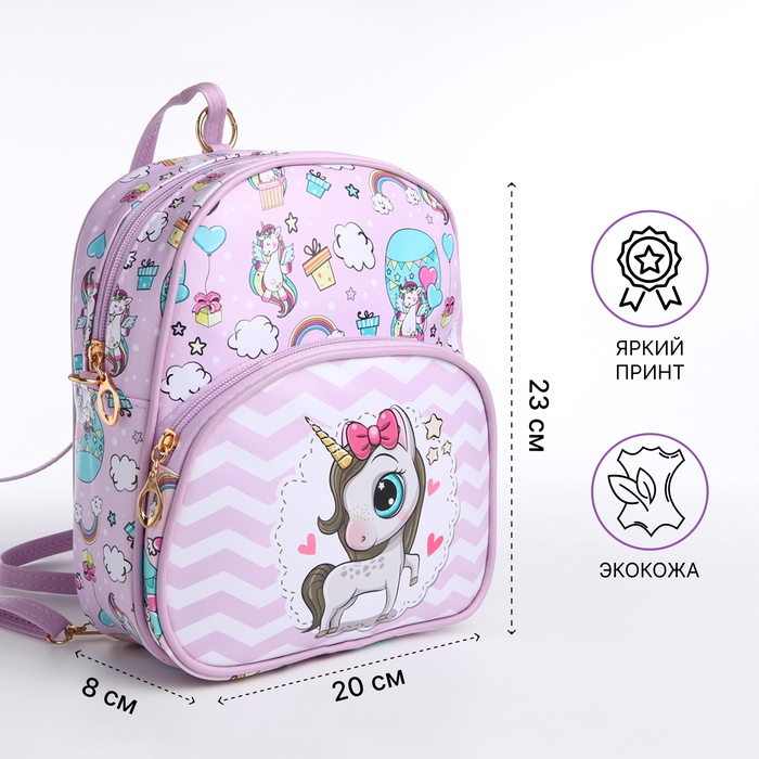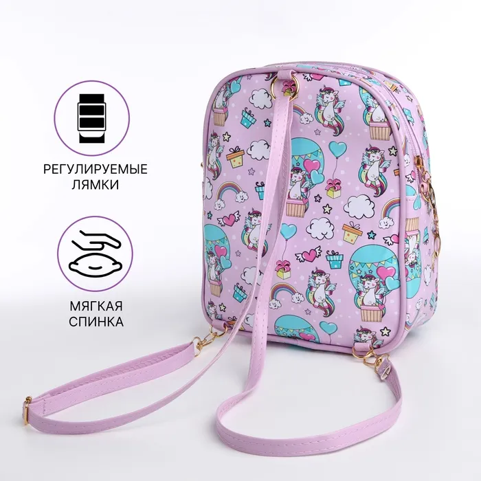 Рюкзак детский «Выбражулька», на молнии, размер 20×8×23 см, сиреневый — Характеристики