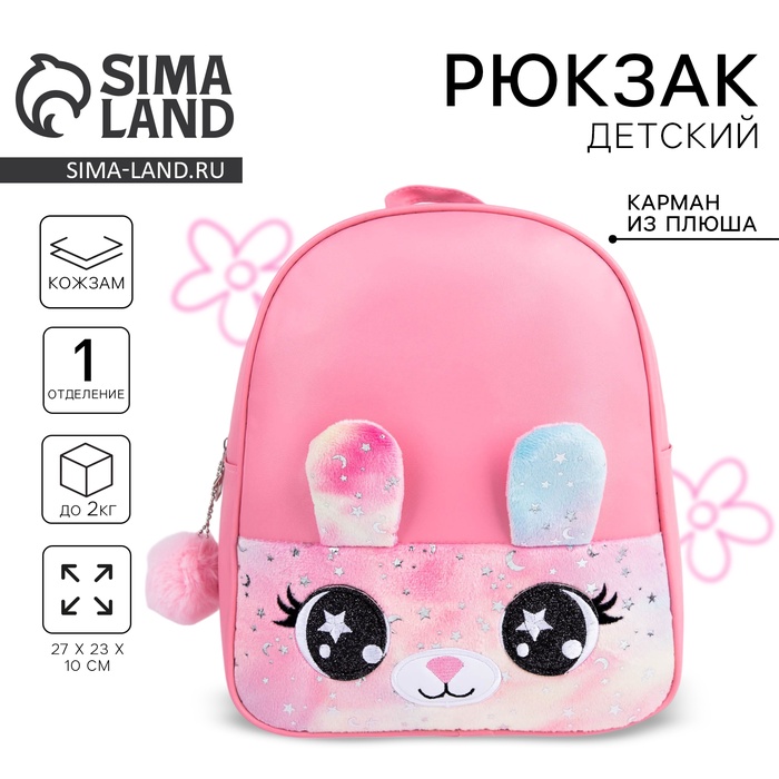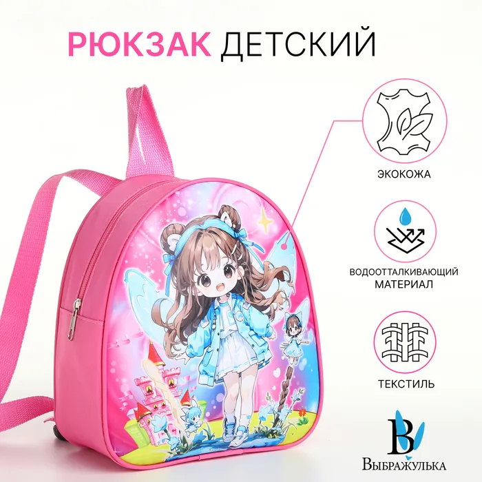 Рюкзак детский «Выбражулька», на молнии, размер 21×8×23 см, розовый — Характеристики