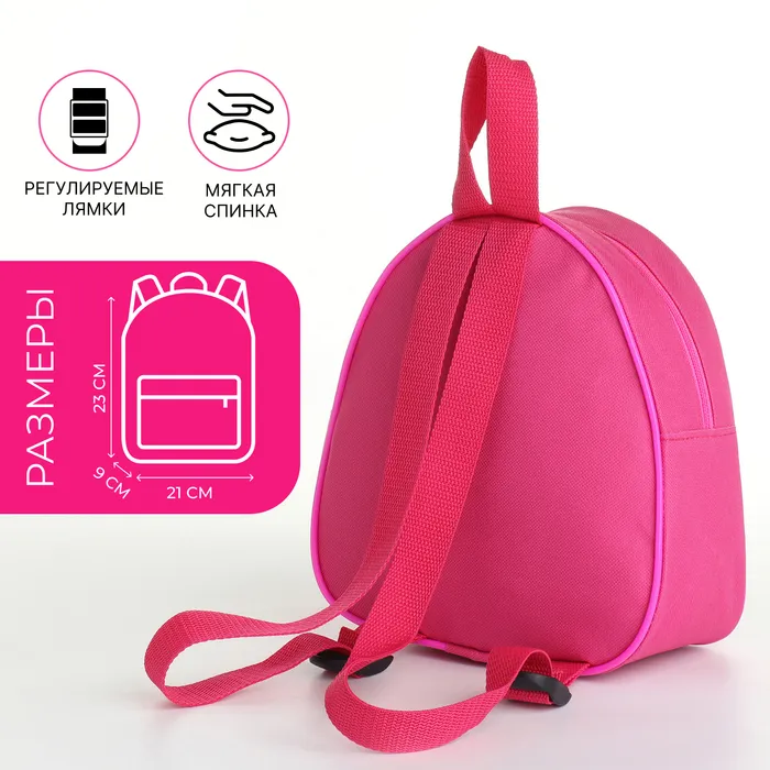 Рюкзак детский «Выбражулька», на молнии, размер 21×9×23 см, розовый — Характеристики