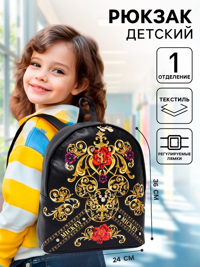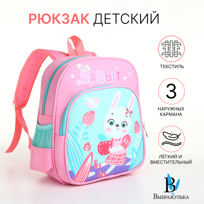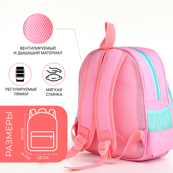 Рюкзак детский «Выбражулька» на молнии, с карманами, размер 23×14×30 см, розовый/голубой — Характеристики