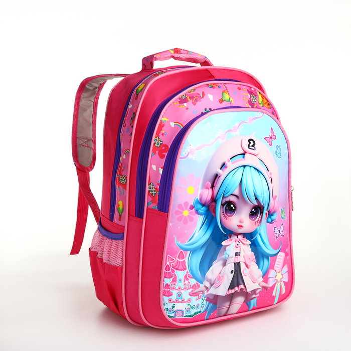 Рюкзак детский «Выбражулька», на молнии, с карманами, размер 28×16×38 см, малиновый — Характеристики
