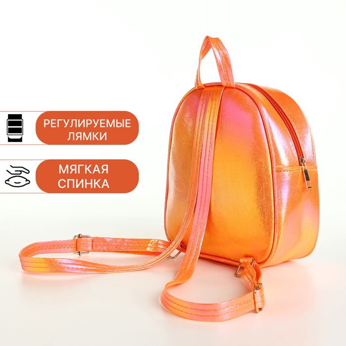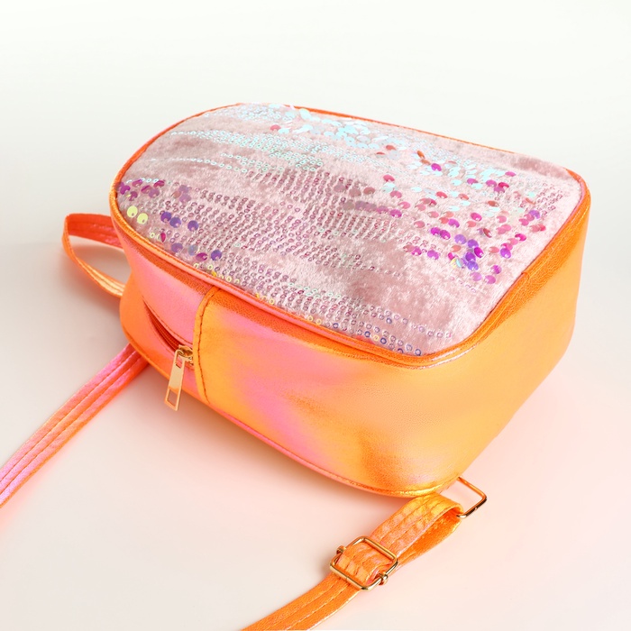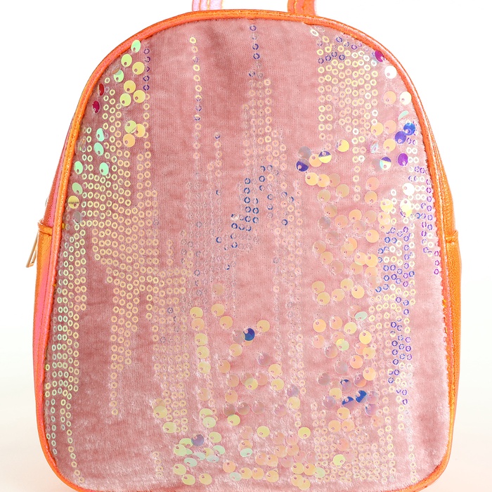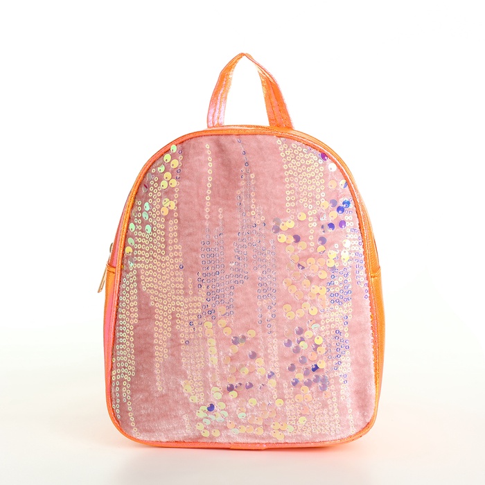 Рюкзак детский «Выбражулька», на молнии, с пайетками, размер 20×9×23 см, оранжевый — Характеристики