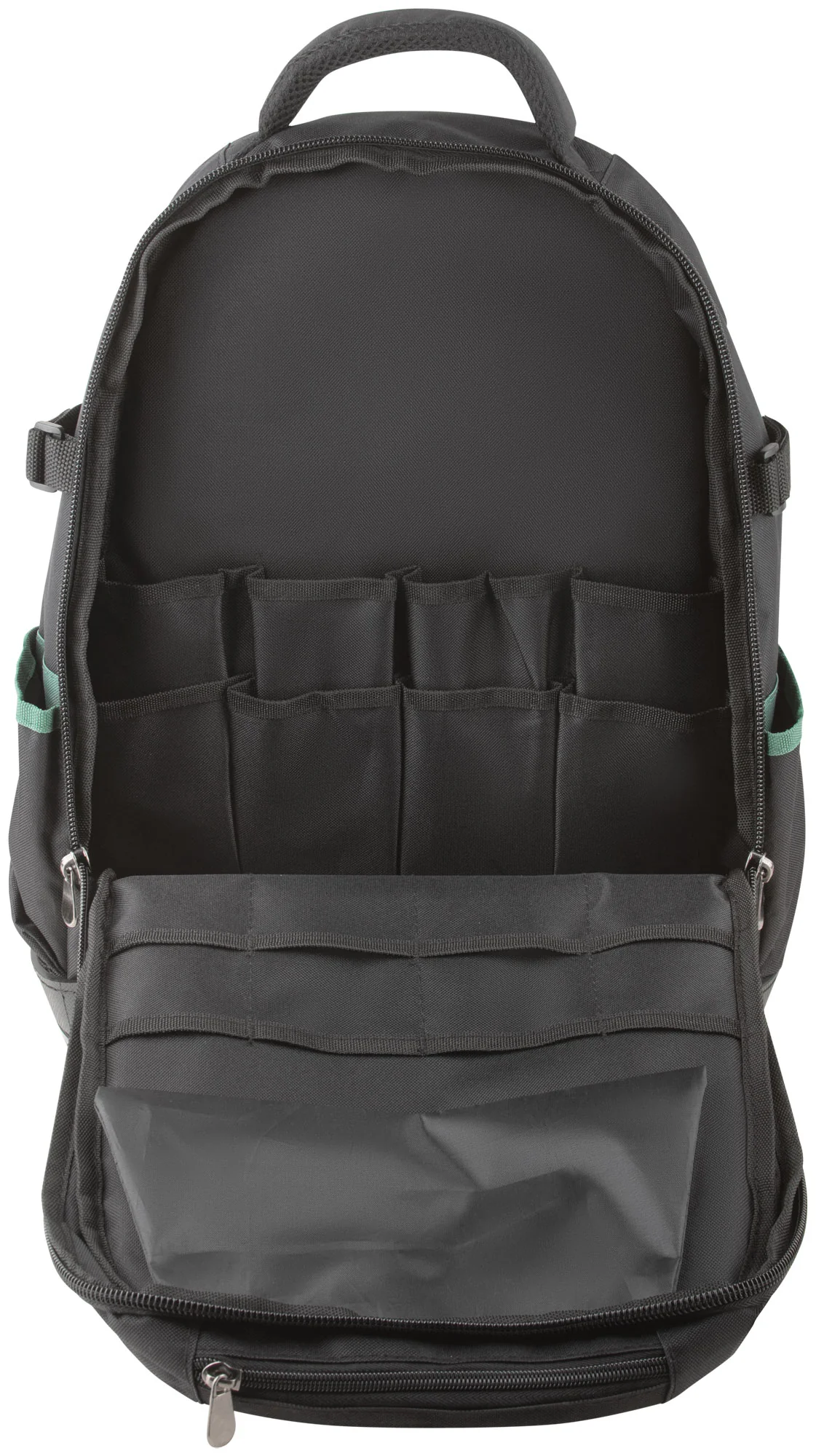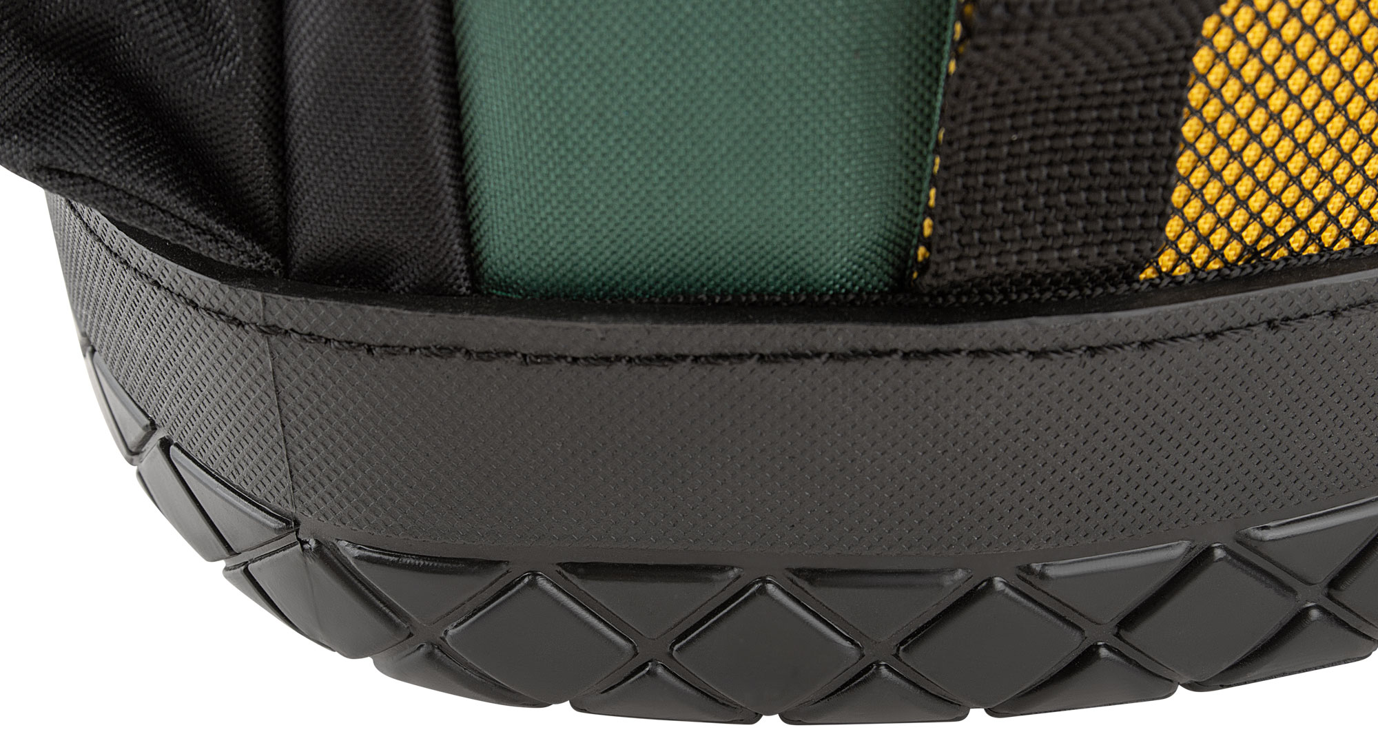 Конструкция рюкзака включает съемный внутренний органайзер, который позволяет быстро находить нужный инструмент. Гибкое резиновое дно обеспечивает устойчивость и защищает содержимое от влаги и грязи. Изготовлен из прочного полиэстера, что делает его долговечным и устойчивым к износу.