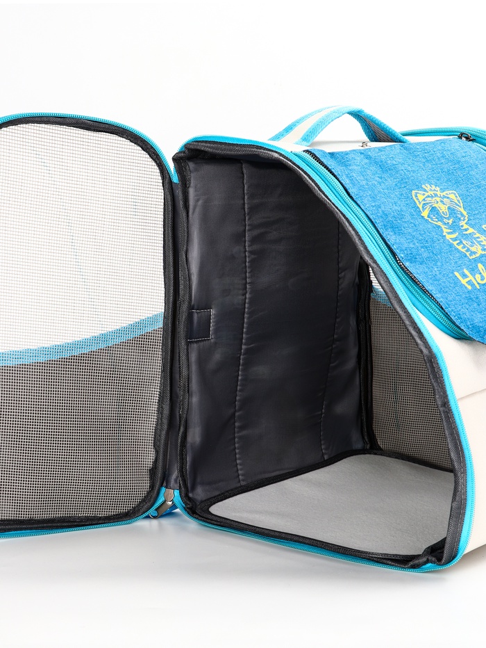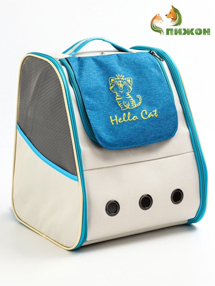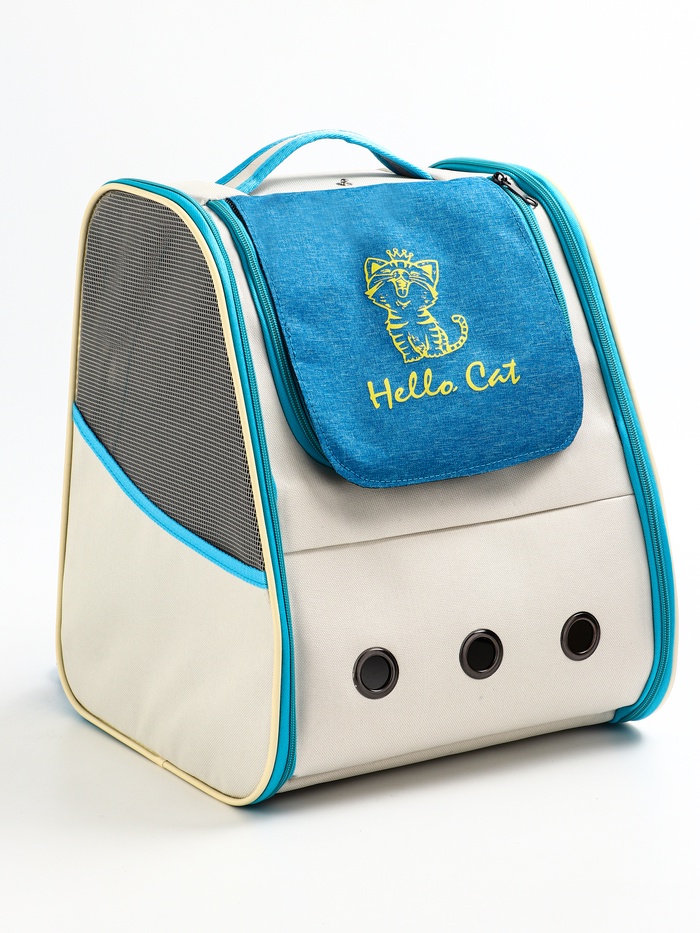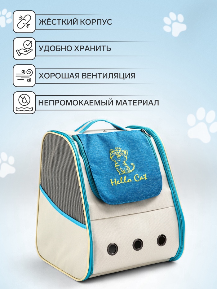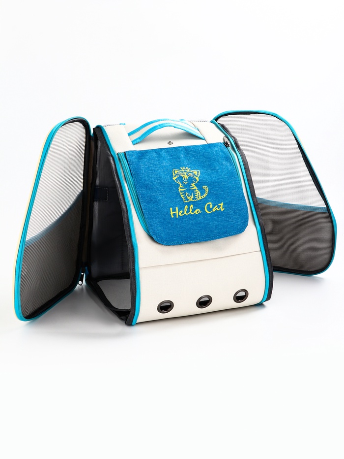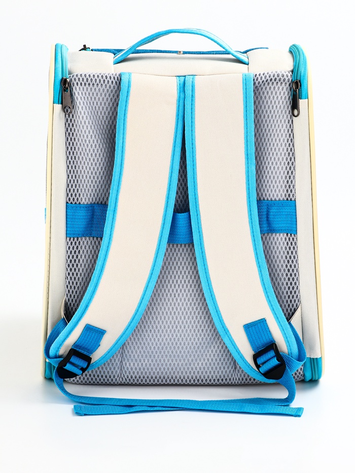 Рюкзак для переноски кошек и собак, 32×28×38 см, прозрачный, белый, синий — Характеристики