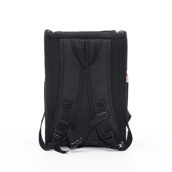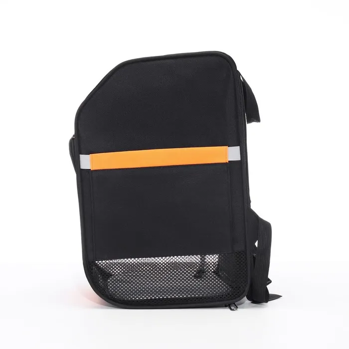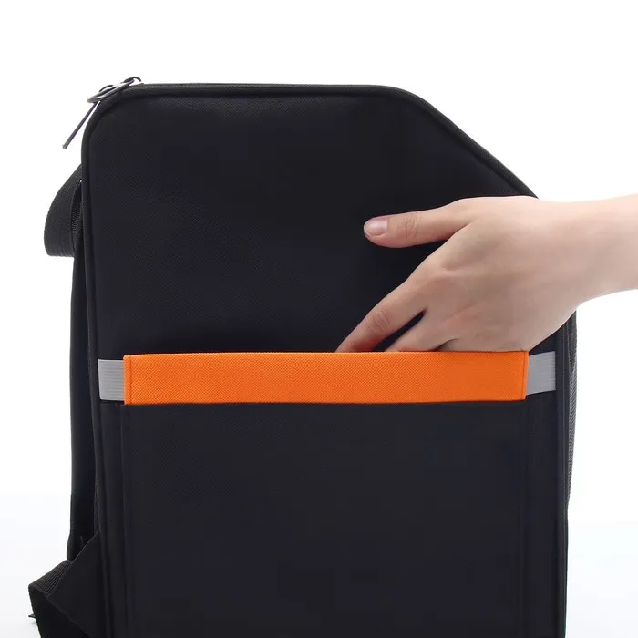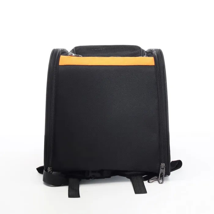Чёрно-оранжевый цвет рюкзака придаёт ему современный и привлекательный вид. Яркие детали не только подчеркивают стиль, но и делают его легко заметным в любом интерьере или на улице.