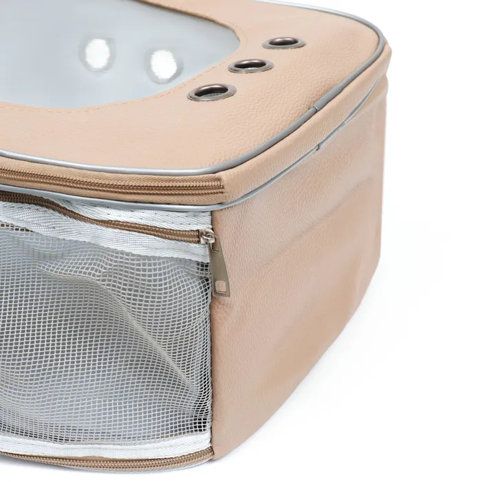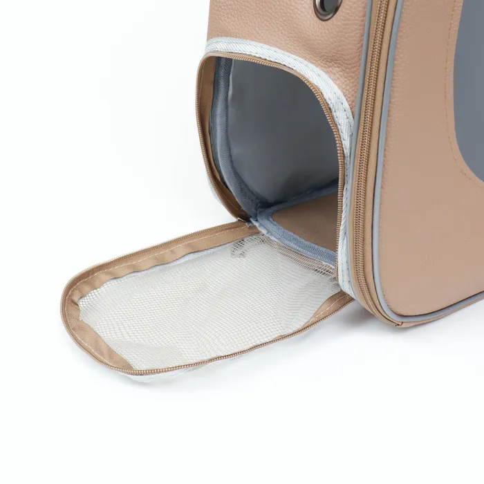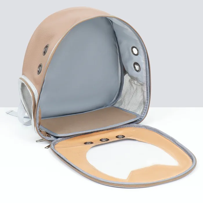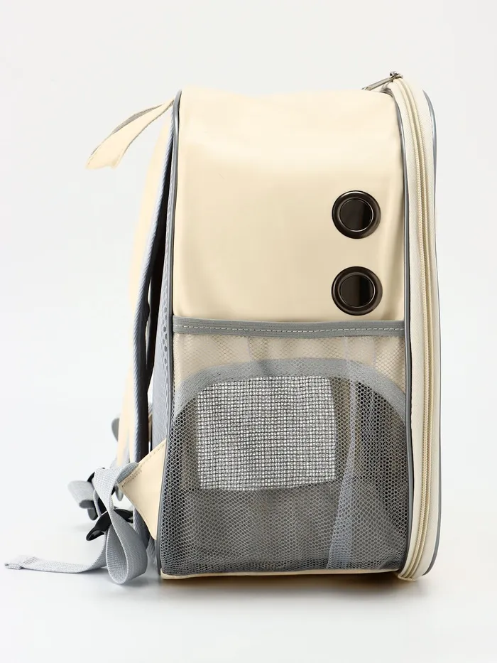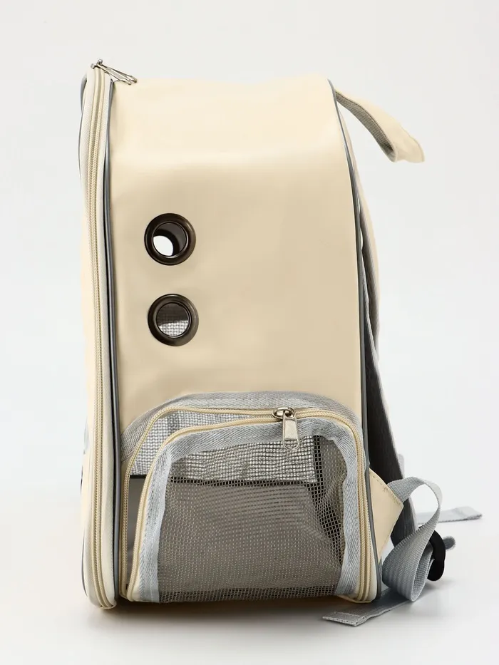 Дорожный рюкзак-переноска для мелких домашних питомцев – идеальная сумочка, в которой вы сможете взять своего питомца в поездку, в самолет, на прогулку или отнести к ветеринару.Подойдет для кошек и собак мелких пород весом до 5 кг.Комфортное путешествие для вашего питомца: нет травмирующих деталей, и всегда есть доступ к свежему воздуху через фильтр.Через пластиковое прозрачное окно-иллюминатор вы сможете подглядывать за любимцем.Лямки регулируются, и вы с легкостью сможете настроить их под себя. Для более удобного перемещения переноска оснащена ручкой.Материал изготовления – искусственная кожа, прочная и водоотталкивающая, легко чистится, обеспечивая долгую службу изделия.В комплект входит маленькая подкладка, которая находится на дне сумочки. Размеры переноски основаны на стандартах авиакомпаний, вы сможете брать переноску в ручную кладь.Приобретая такую переноску, будьте уверены в том, что ваш питомец находится в комфорте и безопасности и рядом с вами в любых условиях.