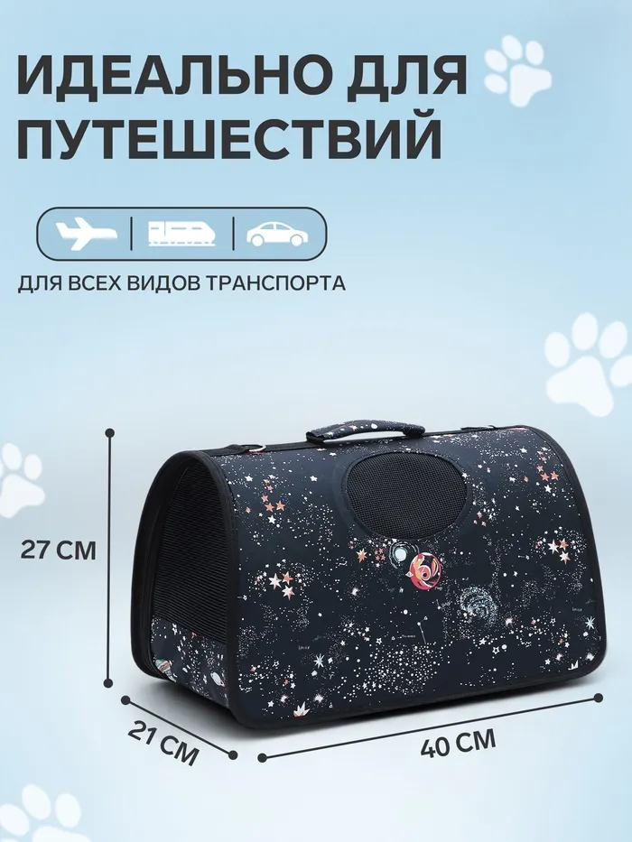 Этот стильный и практичный рюкзак для переноски животных станет отличным спутником для выгула ваших питомцев или поездок. Его размеры — 40 х 30 х 26 см — делают его универсальным вариантом для небольших собак и кошек, весом до 8 кг.