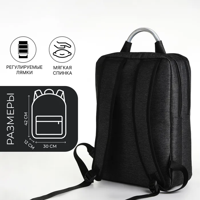 Рюкзак городской на молнии, 2 кармана, с USB, цвет чёрный — Характеристики