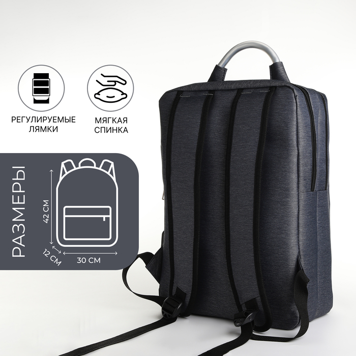 Рюкзак городской на молнии, 2 кармана, с USB, цвет синий — Характеристики