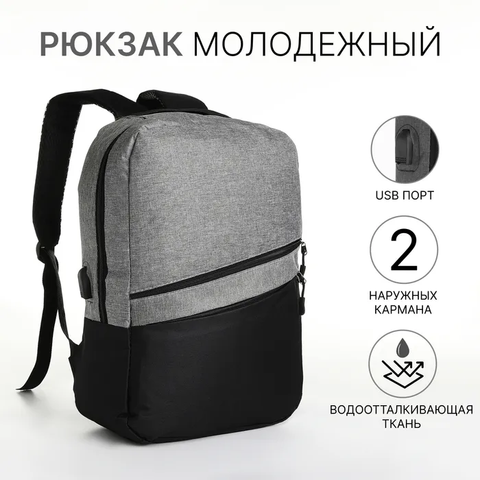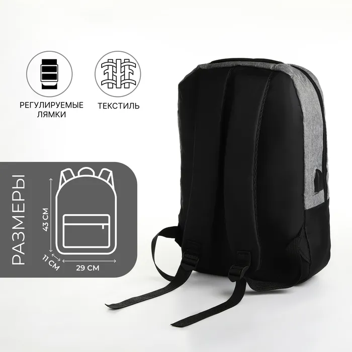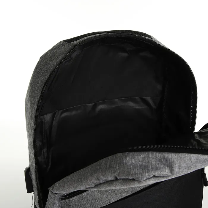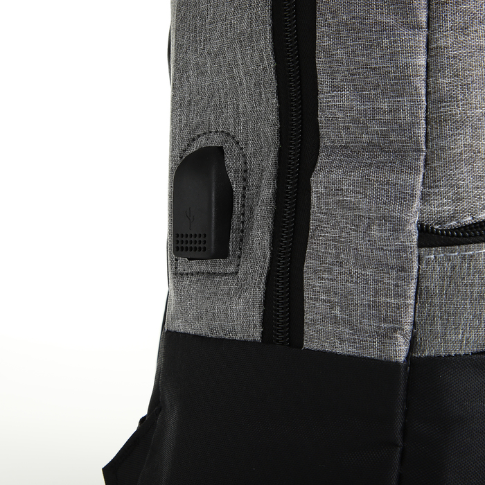Рюкзак городской на молнии, с USB портом, карманами, чёрный/серый — Характеристики